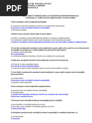 O.g. Nr. 2/2001. 2/2001 privind regimul juridic al contravenţiilor sunt prevăzute următoarele 10 sancţiuni contravenţionale, dintre care 3 sunt principale şi 7 sunt complementare. Adeverință de vechime în muncă (generare prin importul datelor din revisal). 2/2001 seite 2 impressum hinweis: Declarație în conformitate cu prevederile art. 2/2001, termenul de prescripie a aplicrii i executrii sanciunii contravenionale este de 3 ani de la data svririi faptei.