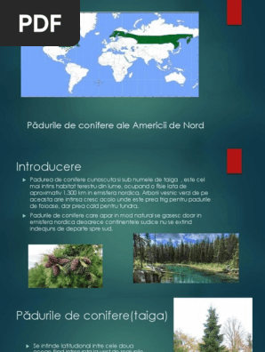 vizitati articolul complet aici : https://ro.scribd.com/presentation/369124129/Padurile-de-Conifere De la wikipedia, enciclopedia liberă. Pădure de conifere din zona temperată. Solul padurilor de sub conifere tinde sa fie acid, pentru ca aici se aduna acele rasinoase si lipseste descompunerea si reciclarea substantelor nutritive, caracteristica padurilor mai deschise de foioase.exista o gama speciala de plante care se ivesc.