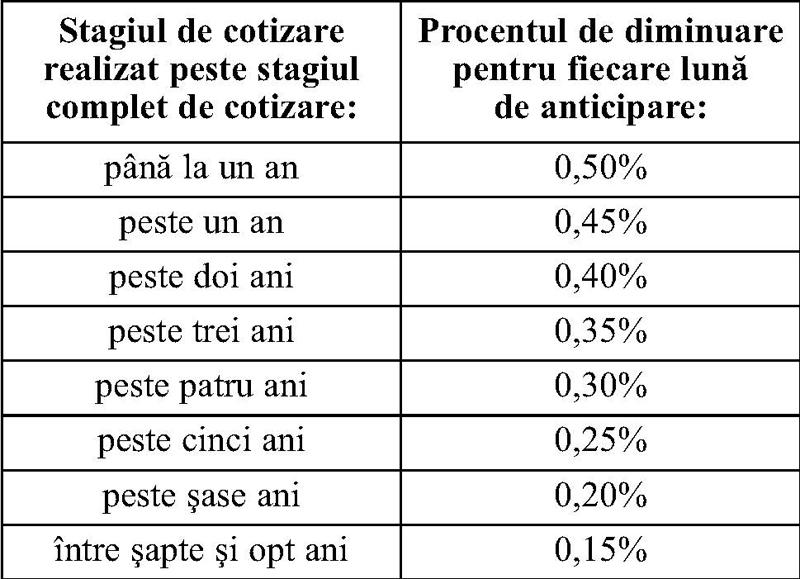 vizitati articolul complet aici : https://adevarul.ro/economie/stiri-economice/ce-inseamna-pensie-anticipata-dreptul-ea-legea-vigoare-calculator-1_60ac95945163ec427167209d/index.html Stagiul de cotizare poate fi completat urmând mai mulți pași. În situația realizării stagiului complet de cotizare prevazut de lege, aveti dreptul la o reducere de 1 an și 6 luni, pentru activitatea desfasurata in prin urmare, dacă veți realiza stagiul complet de cotizare prevăzut de lege de 31 de ani si 5 luni, va puteti inscrie la pensie anticipata partiala de la implinirea. 192/2015 pentru completarea acestei legi, sintagma „stagiile complete de cotizare prevăzute de lege, corespunzătoare fiecărei situaţii se referă la legea în vigoare la data recalculării pensiei prin acordarea majorării de punctaj, respectiv la legea nr.